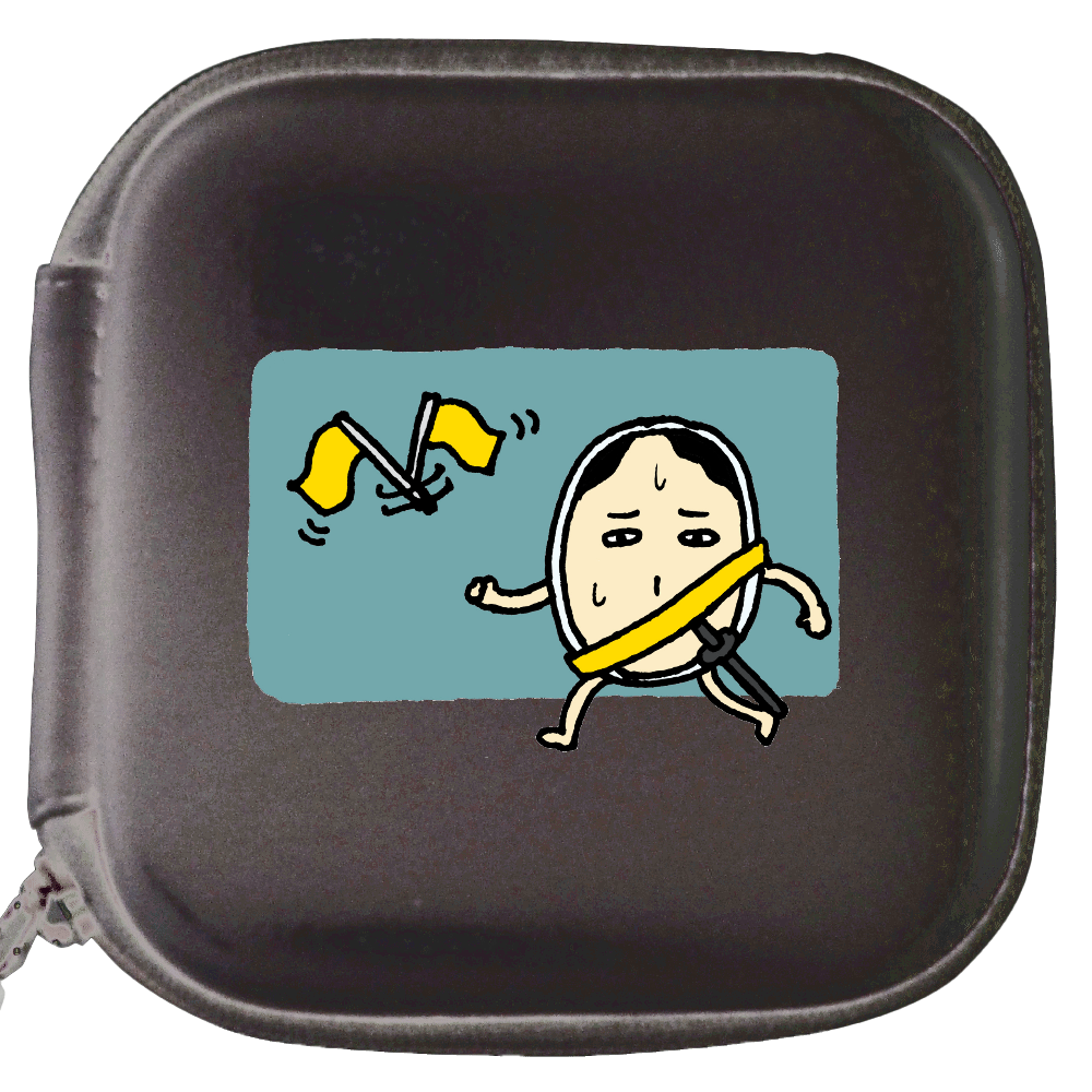目薬やリップ、ハンコなどの細々とした小物をしまうことができるサイズ感です。 見開き開閉で出し入れしやすく、伸縮性のあるメッシュ素材のポケットでガジェットや小物などしっかり収納できます。 沿道からの声援を受け、一生懸命走る「とこ武士」がグっとくるデザインです。